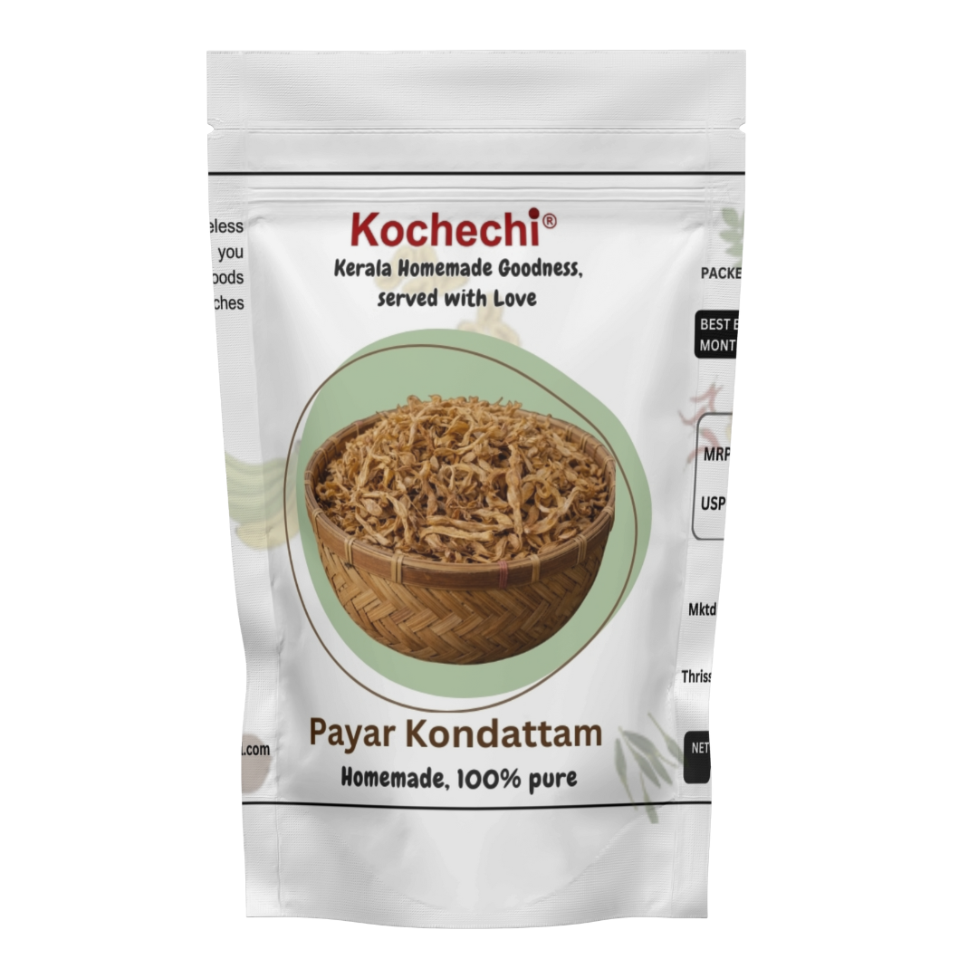 When fried, the kondattam turns light, airy, and delightfully crispy. It can be enjoyed as a crunchy tea-time snack or served as a traditional side dish with rice and curries. Made without preservatives or artificial additives, Kochechi Payar Kondattam reflects the brand’s commitment to purity, simplicity, and authentic homemade taste inspired by Kerala’s rural kitchens.